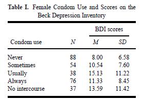 The second paragraph is rather misleading. The authors did not control for any of the variables that the article said it controlled for. The results section of the original paper is what can only be described as a clusterfuck of various correlations, none of which actually include controlling for anything. The women differed on many of the variables, for example, on frequency of intercourse (the women who never used condoms had the most sex). This was not statistically controlled for: everything was simply chucked into the same regression model. The model was not significant and explained a trivial amount of the variance in depressive symptoms. Although the coefficient for condom use was statistically significant, the coefficient itself was small, and likely trivial.
